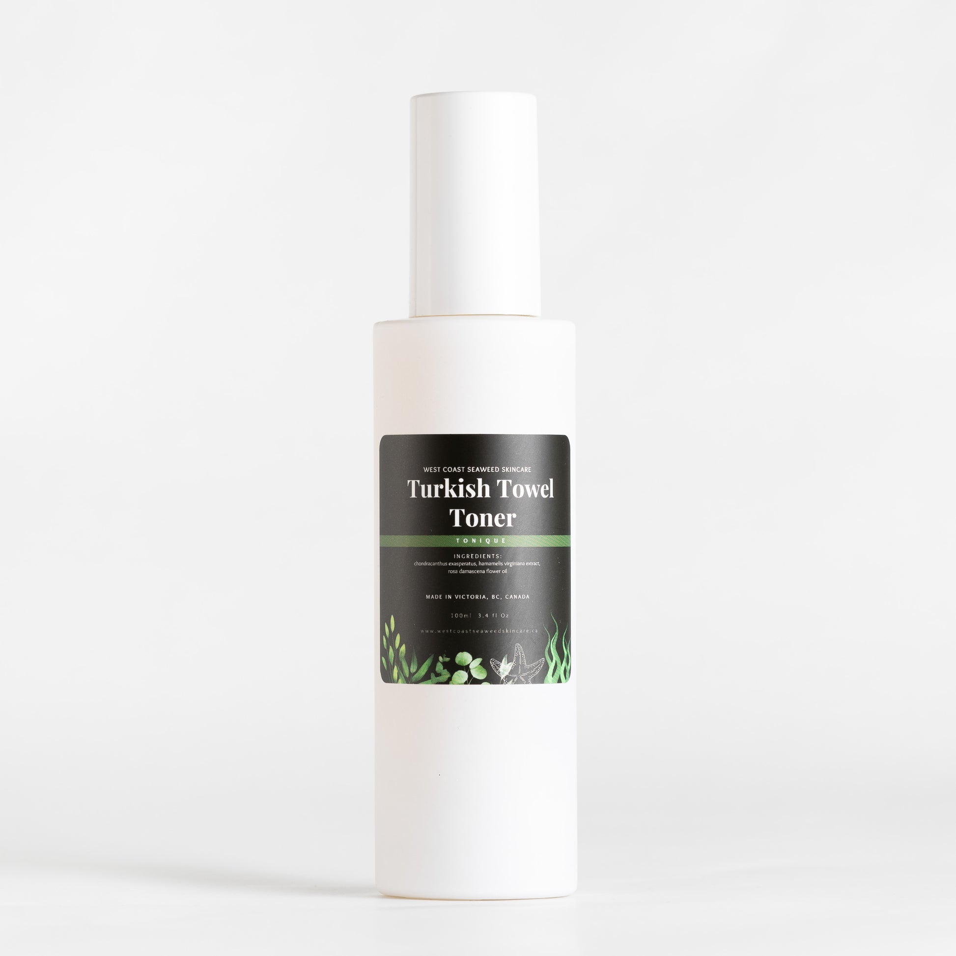 The Turkish Towel Toner with Nootka rose is a gentle, hydrating toner designed to refresh, soothe, and rebalance skin without stripping its natural moisture. Aloe vera juice helps deliver deep hydration and comfort, while Turkish towel algae gently clarifies by lifting away daily buildup and impurities. Mineral-rich algae support a calm, resilient skin barrier and help refine the look of pores for smoother-looking texture. Finished with antioxidant-rich Nootka rose oil, this toner helps restore radiance and leaves skin feeling soft, refreshed, and comfortably hydrated.